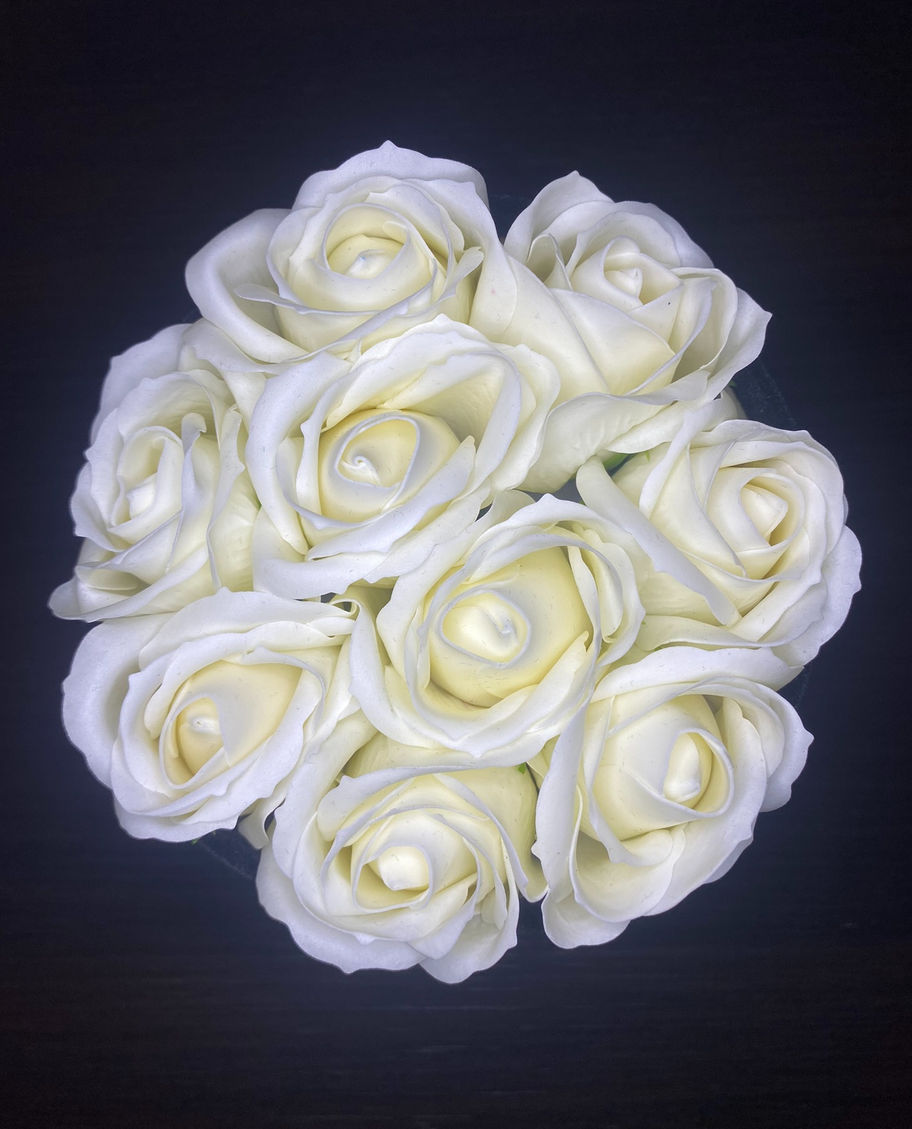 Redefinește gesturile rafinate cu Black Velvet Roses – o cutie sofisticată ce adăpostește trandafiri albi din săpun, sculptați cu delicatețe și perfecțiune. Fiecare floare este așezată cu grijă într-o cutie de catifea neagră, contrastând sublim puritatea albului cu eleganța profundă a negrului.