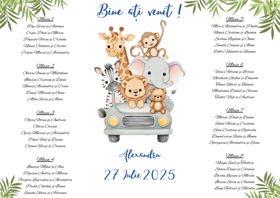Lasă-ne lista cu invitați și numărul mesei lor în dreptul fiecăruia